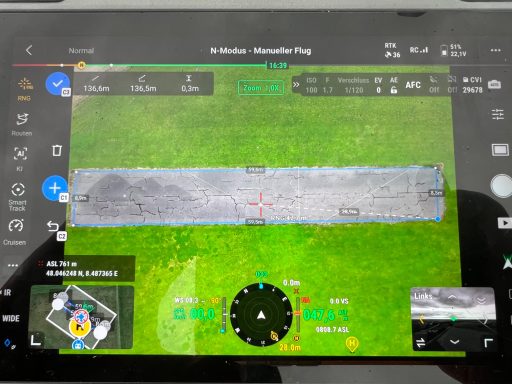 Dachvermessung mit Inspektionsmonitor 27 Zoll und Vermessung Start und Landebahn Modellflugplatz MFGVS